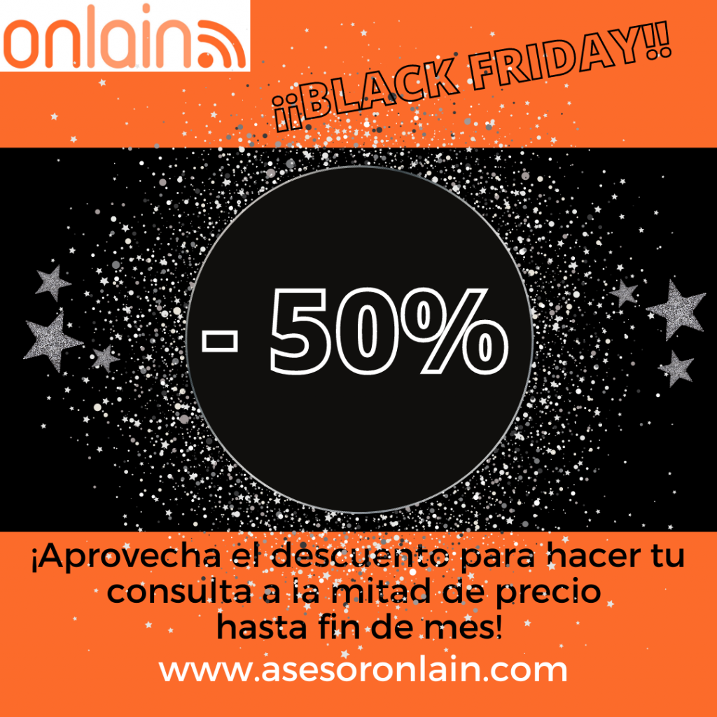 BLACK FRIDAY ¡Aprovéchate de este descuento! Ahora y hasta el fin del mes de noviembre, realiza tus consultas a mitad de precio. ¡No te quedes con dudas, consúltanos!